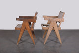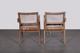 A rare and authentic pair of ‘Fauteuil en Teck’ (commonly known as “King” chairs) designed by Pierre Jeanneret, circa 1955, for the modernist city of Chandigarh, India.