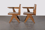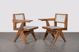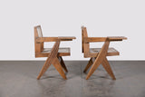Taxes & duties includedAn authentic pair of student chairs designed by Pierre Jeanneret for educational and civic institutions in Chandigarh, India, circa 1950s.