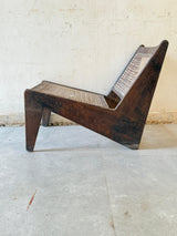 Iconic Kangaroo Chairs, made circa 1955 for the Government of North India as part of the Chandigarh project. Stamped G.N.H/CH-019 and G.N.H/CH-040. Solid teak with cane seats and backs.