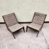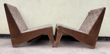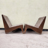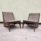 Taxes & duties includedThis rare and unique pair of upholstered kangaroo sofa chairs was handmade in the city of Chandigarh, India. The intricate detailing on the frame and kangaroo print fabric of the upholstery makes this set truly one of a kind.