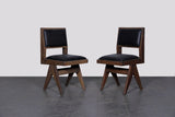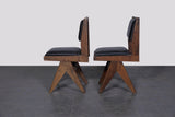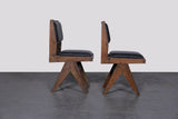 Taxes & duties includedAn original pair of dining upholstered chairs designed by Pierre Jeanneret for institutional interiors in Chandigarh, India, circa 1950s.