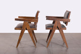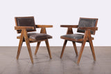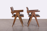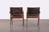 Taxes & duties includedAn original and refined pair of floating back upholstered chairs designed by Pierre Jeanneret for institutional interiors in Chandigarh, India, circa 1950s.