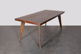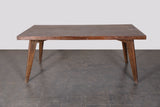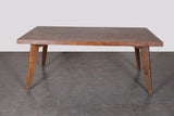 A rare and architecturally refined solid wood dining table 6/3 designed by Pierre Jeanneret for the administrative buildings of Chandigarh, India, circa 1950s. Executed in solid teak, the piece is defined by its strong linear proportions and expressive structural elements, reflecting Jeanneret’s functionalist approach to furniture design during the Chandigarh project. The surface shows a warm, even patina consistent with decades of institutional use. All prices include the full restoration of the piece.