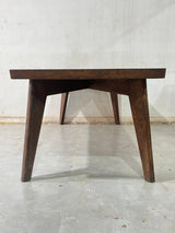 Supported by two pairs of slanted, tapered legs joined by distinctive V-shaped stretchers — a hallmark of Jeanneret’s functional modernism. Retains its original stencilled marking “I.T.I / Rajpura / PB. / T-37”, indicating provenance from the Industrial Training Institute, Rajpura (Punjab).