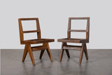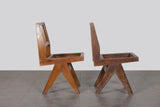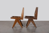 Taxes & duties includedAn authentic pair of dining chairs designed by Pierre Jeanneret for the civic and administrative buildings of Chandigarh, India, circa 1950s.